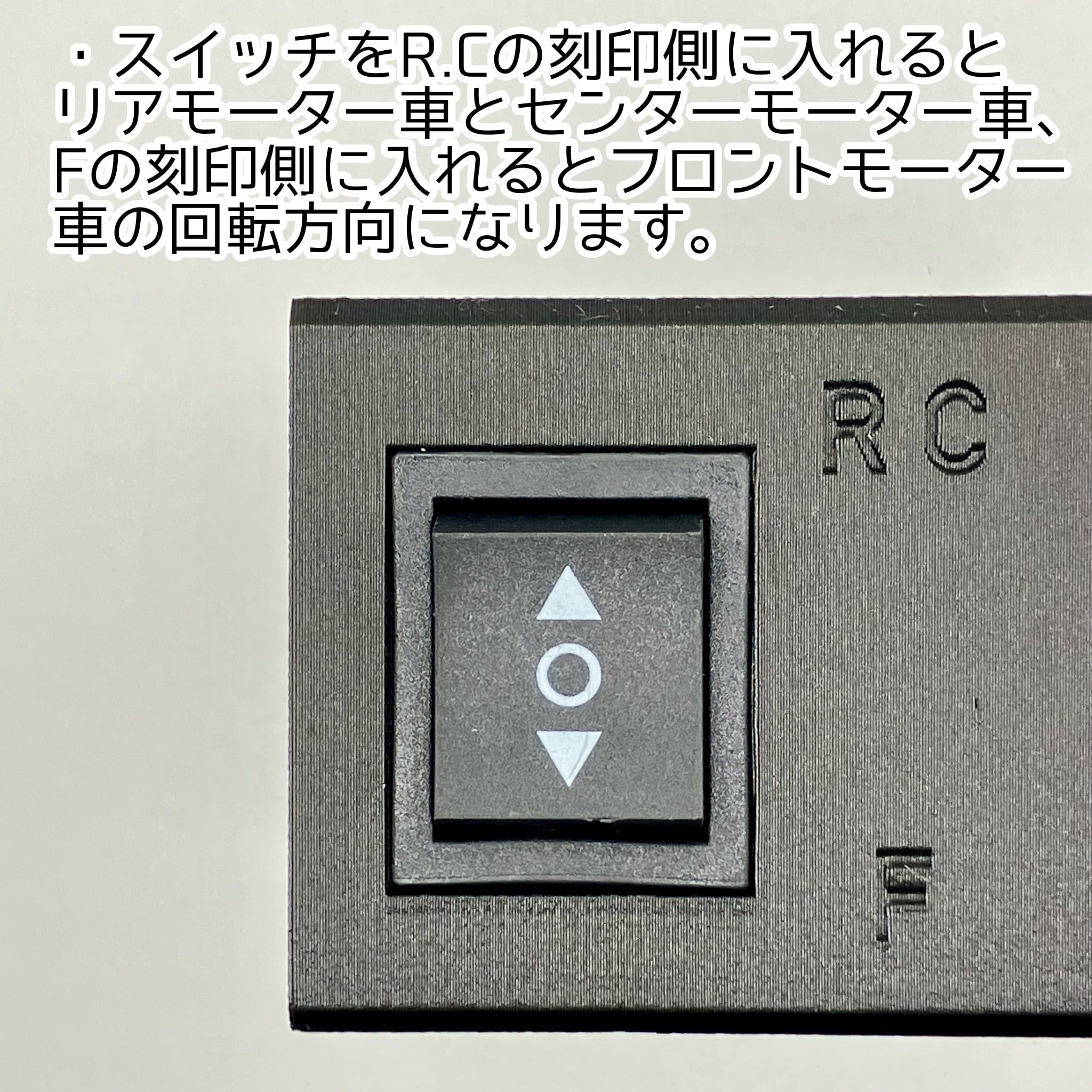Fの刻印側はフロントモーター車、R・Cの刻印側はリアモーター車とセンターモーター車の正回転になります。