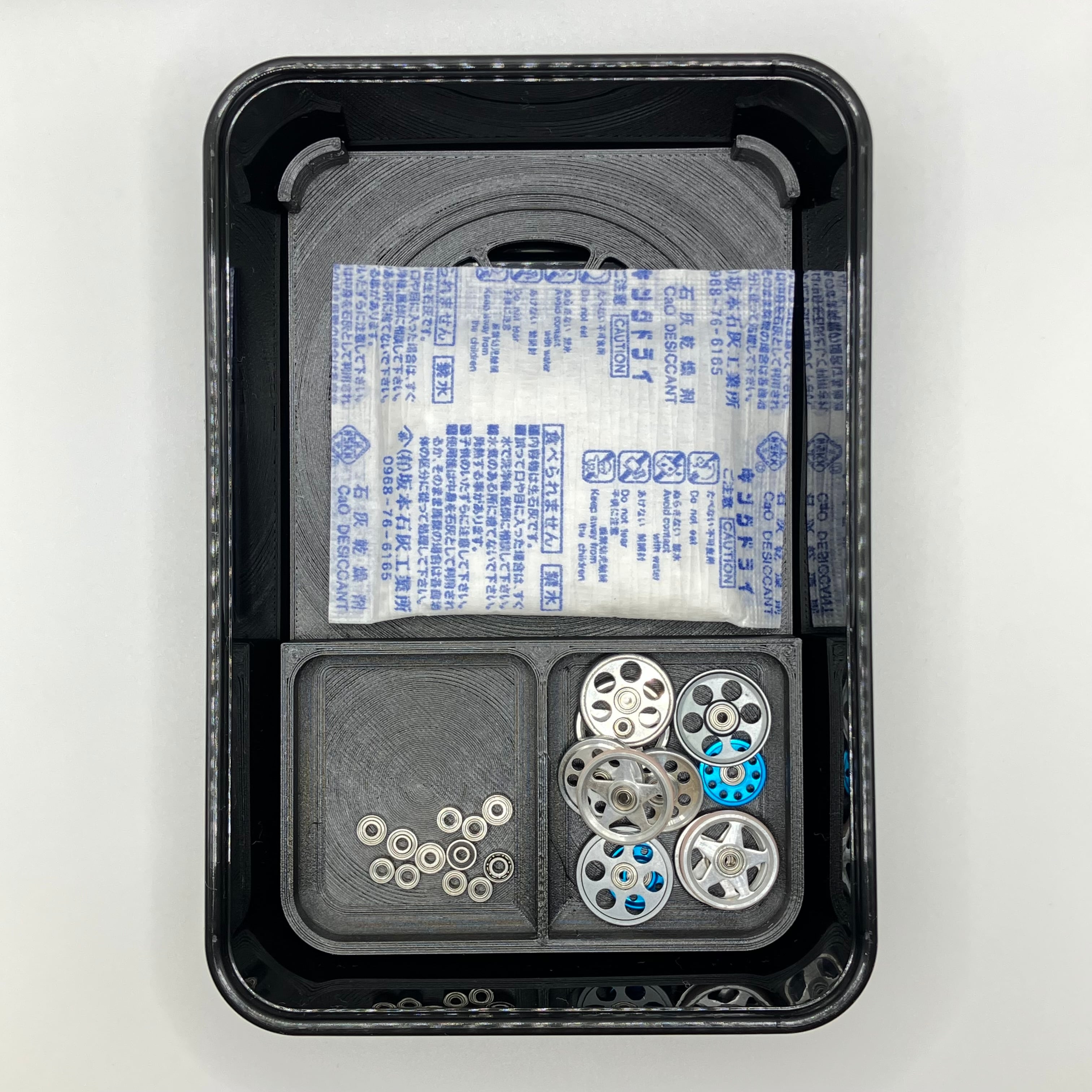 ミニ四駆のモーター、ベアリング、ターミナル等を保管する為のケースです。