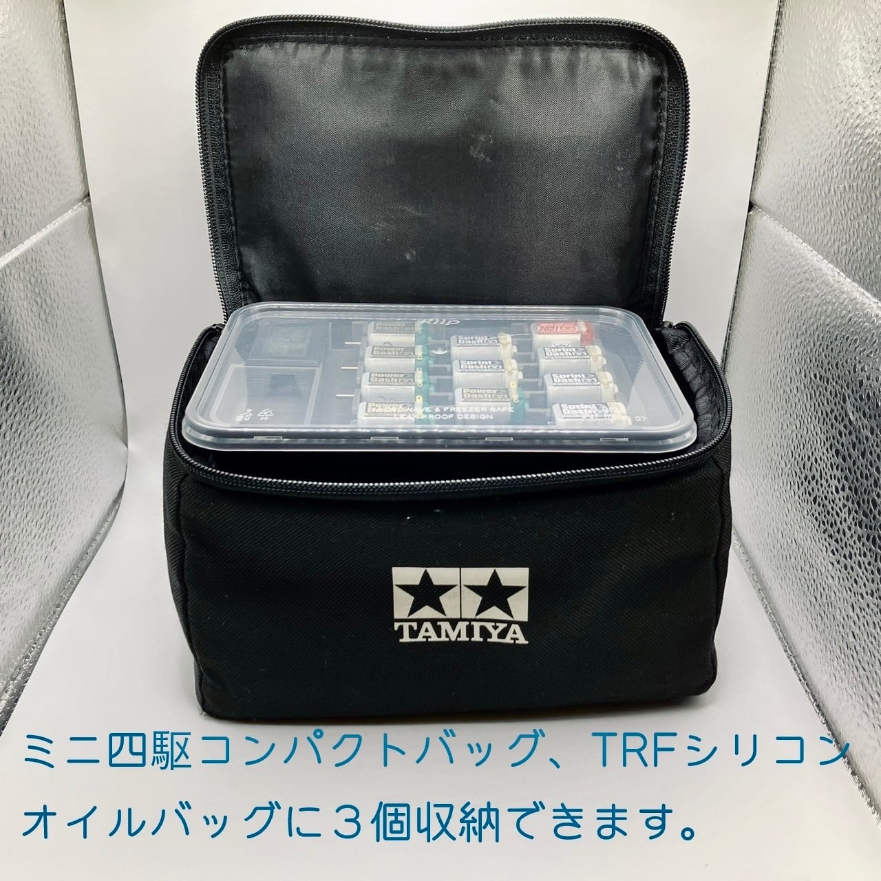 ミニ四駆コンパクトバッグ又はTRFシリコンオイルバッグに3個収納できます。